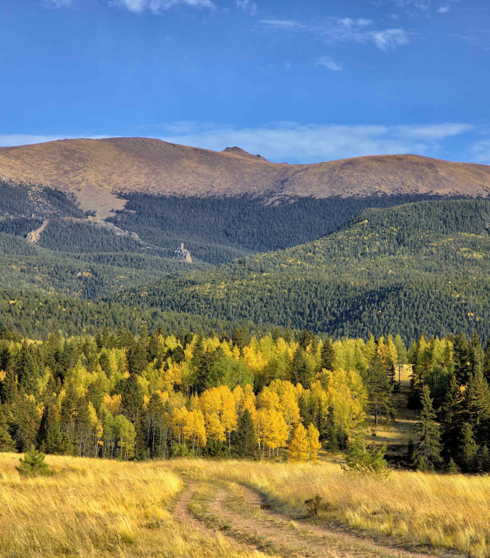 A few more miles down the road, the Horsethief Park Trail, about half-way to Horsethief Falls, is Aspen-rich, with leaves that turn gold in the fall.
