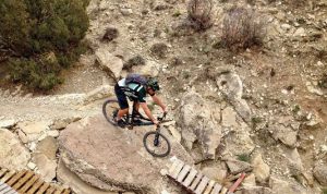 This loop has it all! You’ll find everything from technical rock riding and flowy singletrack to relaxed dirt road riding and an interesting section of the historic Midland Railroad grade. Incredible views are omnipresent and you’ll feel a sense of accomplishment once finished. Start the ride by driving up County Road 304 a couple of miles from its junction at Highway 24 just east of Johnson Village. A small parking lot is found where County Road 304 meets the Midland Railroad grade. Start the figure-eight loop by heading east for two-tenths of a mile and then down Django (Trail #6033). This purpose built singletrack descends through a sparse piñon forest winding over and around many rock features, some of which may test your bike handling skills. Once at the bottom, cross County Road 304 and pick up Fist Full of Dollars (Trail #6034). Heading back uphill, you’ll encounter similar terrain to that which you just rode down, but easier and less technical. Once back at the car, grab a snack and refill your water pack; the best is yet to come! Pick up County Road 376-A, essentially across from the start of Django. Pedal up this graded dirt road for about a mile and a half to a small meadow and the start of Bacon Bits (Trail # 1450A). Ready to smile? Downward trending and full of surprises, this trail features some of the most fun singletrack in the area. Twisty, flowy, scenic, and never too demanding, Bacon Bits will leave you grinning from ear to ear. Head right on the historic Midland Railroad grade (Midland Bike Trail) and enjoy a slight downhill cruise with occasional semi-technical ups and downs through various washes back to your car. If Django and Fist Full of Dollars are omitted, this ride is an approximate 7-mile fun loop than leans toward a beginner skill level. Otherwise, consider it to be an intermediate 10-mile figure-eight loop.